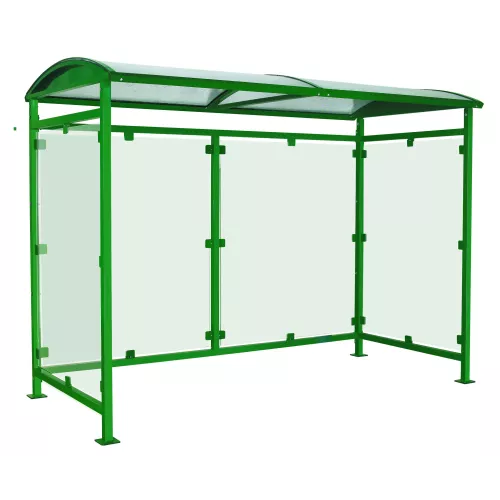Matériau : Acier 50 x 50 mm Finition : Sablage, métallisation et thermolaquage (voir RAL) Bardage : Fond ou latéral en plexiglas transparent de 8 mm d'épaisseur Toiture : Polycarbonate...