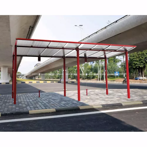 Longueur3000 mmProfondeur totale1550 mmHauteur2450 mmPoteauxAcier 180 x 100 x 5 mmPoutre horizontaleTube acier 120 x 120 mmToiturePolycarbonate épaisseur 8 mm protection, traité anti-UVBardage...