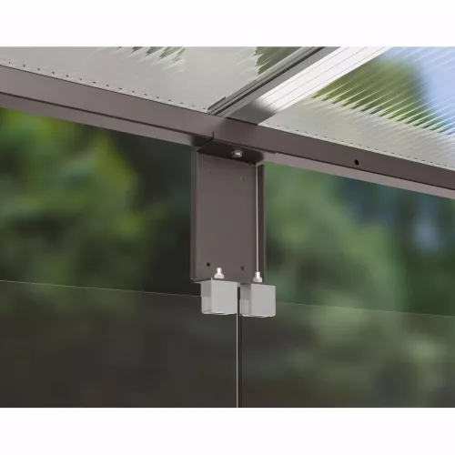Longueur3000 mmProfondeur totale1500 mmExtension par module intermédiaire1000 mmPoteauxTube acier 100 x 60 mmHauteur sous toiture2200 mmToitureVitrage en PMMA fumé 6 mm insensible aux UVCadre de...