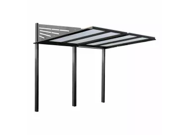 | Toiture | Traverses en tubes acier 50 x 30 mm, panneaux en polycarbonate alvéolaire épaisseur 10 mm traité anti-UV |