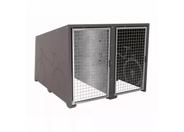 | Portes | Grillage carré fil de Ø 5 mm soudé sur un cadre, finition acier galva ou peint sur galva. Verrouillage de la porte par cadenas (non fourni). Ouverture et fermeture des portes à l’aide d’un vérin |