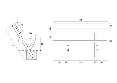 Banquettes en béton armé avec traitement hydrofuge et anti-taches, accessoires d'assemblage par vis ou collage fournis. Livrées avec notice de montage. Emprise au sol : 200x40x40 HT cm...