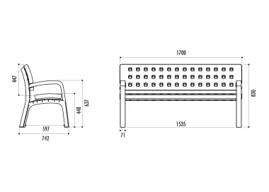 Longueur1800 mmStructureTube acier 30 x 50 mm peint sur zinc selon nos colorisAssise et dossierEn plastique recyclé marronModèles au choixAvec accoudoirs ou sans accoudoirsFixationSur platines,...