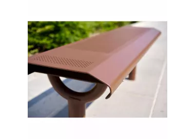 Longueur1800 mmStructureTube acier ø 76 mmAssise et dossierTôle acier perforée de 2 mm, cerclée d’un tube acier ø 38 mmFinitionPeint sur zinc selon nos colorisFixationScellement direct