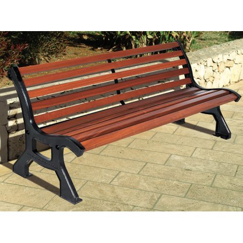 Composition des lames : assise et dossier en bois exotique, traitement fongicide, insecticide et hydrofugePiètement : fonte ductile, finition peinture noire RAL 9005, avec platine centrale de...