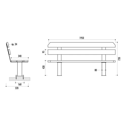 Longueur1800 mmHauteur d'assise450 mmPiétement450 x 450 mm, acier épaisseur 8 mm peint sur zinc selon nos colorisAssise et dossierEn acier peint sur galva selon nos colorisFixationPar tiges...