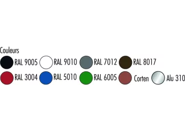 Deux longueurs1080 ou 1580 mmHauteur hors sol985 mmPoteauxTubes acier 80 x 40 mmFinitionAcier peint sur zinc selon nos colorisFixationScellement direct (platines en option). Peut être rendue...