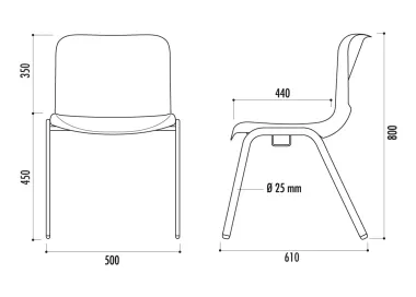 Assemblable Coque : polypropylène aspect grainé, classé M2, 100 % recyclable Pieds : en acier Ø 20 mm finition époxy anthracite Coloris : voir nuancier Empilable : par 16 Tampons : 4...