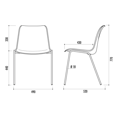 Assemblable Coque : polypropylène aspect grainé, classé M2, 100 % recyclable Pieds : en acier Ø 20 mm finition époxy anthracite Coloris : voir nuancier Empilable : par 16 Tampons : 4...