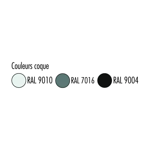Assemblable : oui ou non Coque : polypropylène pur teinté dans la masse, classé M2 ou M4 Caractéristiques de la coque : antistatique et anti UV Coloris : voir nuancier Fixation de la coque :...