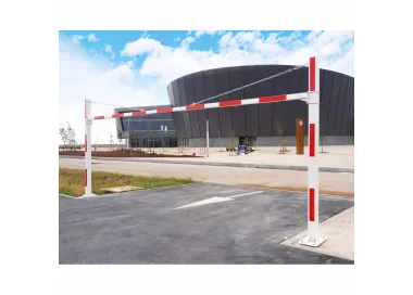 StructureTubes acier galvaniséLargeur6,7 ou 8 mFermeturePar goupille et cadenas sur le support de reposFinitionLaquée blanc sur galva avec bandes réflectos rouges