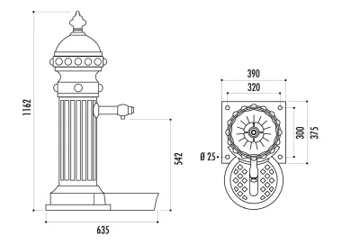 Corps : en fonte avec finition peinture époxy noire Robinet : en laiton chromé à bouton poussoir Fixation : murale Dimensions : larg. 474 x prof. 465 x haut. totale 796 mm Hauteur...