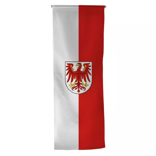 L'oriflamme du Land de Brandebourg (Brandenburg) est disponible pour être accrochée sur un mur, une façade ou sur un mât.