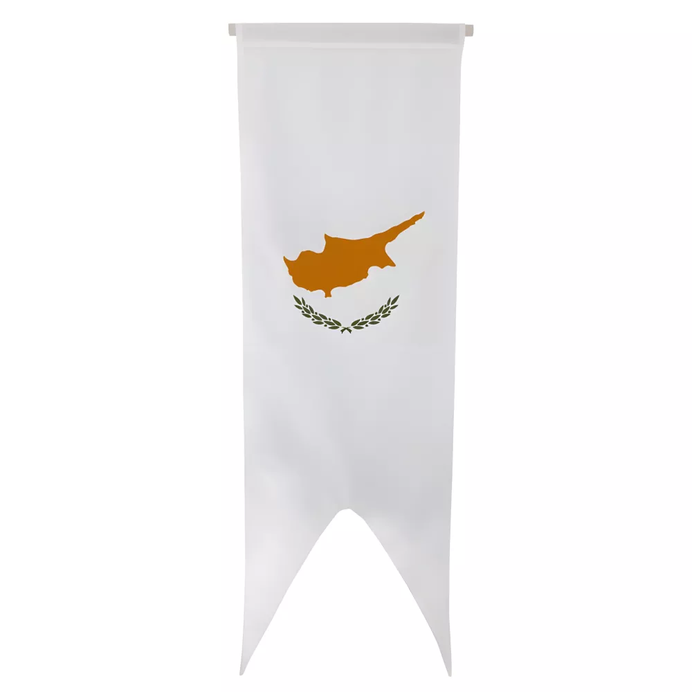 L'oriflamme Chypre en maille polyester 115 g/m² avec composition 3 fils bloqués est idéale pour une utilisation intérieure et extérieure. Montée sur traverse en bois avec cordelette de suspension et ourlets latéraux, cette oriflamme est disponible avec finition droite ou en queue de pie, personnalisable selon vos besoins.