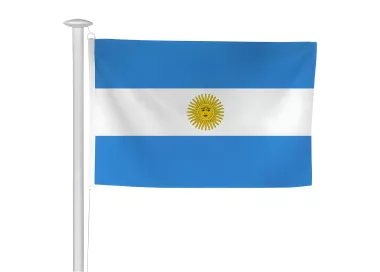 Impression numérique haute définition. Reproduction fidèle des couleurs du drapeau argentin (bleu ciel, blanc et soleil jaune). Résistance aux UV et aux intempéries.