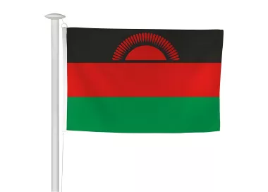 Ce pavillon du Malawi en maille polyester standard est disponible en plusieurs dimensions adaptées à votre mât. Robuste et durable, il peut être personnalisé avec diverses finitions : coins renforcés, œillets métalliques, mousquetons ou monture marine. Compatible avec tous les pavillons de façade standard.