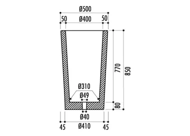 Porte sac en acier galvanisé, sandow et couvercle en acier galvanisé.Modèle « Theia » 50 : Dimensions : 50x105 cm Poids : 160 kg ép : 8 cm Volume sac poubelle : 110 LModèle « Theia » 60...