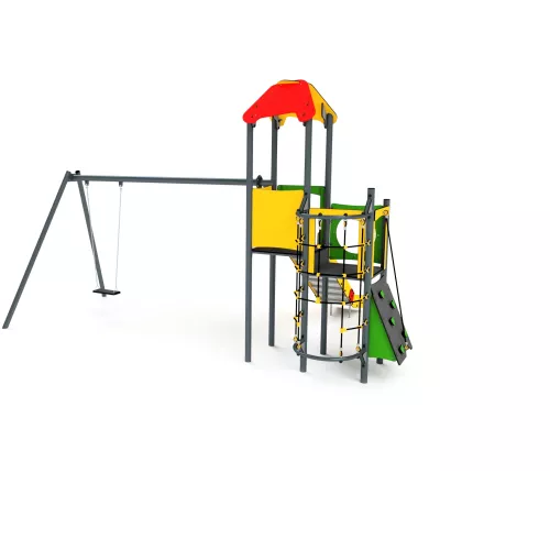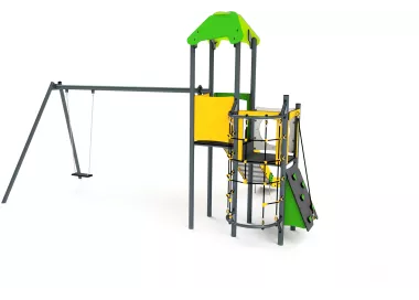 Dimensions : 4,0 x 3,6 m Zone de sécurité : 6,5 x 6,6 m Hauteur maximale : 3,2 m Hauteur de chute : 1,2 m Tranche d'âge : 1+ Conformité avec PN-EN1176 : oui Plateforme : 1x 1,2 m; 2x 1,0 m;...