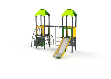 Dimensions : 4,0 x 3,6 m Zone de sécurité : 6,5 x 6,6 m Hauteur maximale : 3,2 m Hauteur de chute : 1,2 m Tranche d'âge : 1+ Conformité avec PN-EN1176 : oui Plateforme : 1x 1,2 m; 2x 1,0 m;...