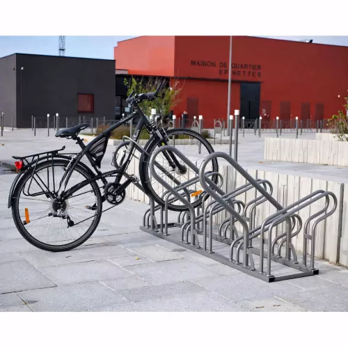 Module3 ou 6 places, simple ou double faceLongueur1320 mm (3 places), 2457 mm (6 places)StructureAcier, potelet ø 76 mm, griffes ø 22 mmÉcart entre les arceaux50 mmFinitionPeint sur galva selon nos...