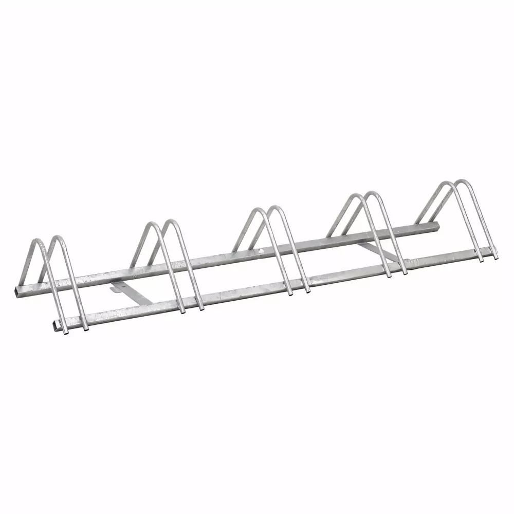 Réalisation : en acier galvanisé à chaud Arceaux : cintrés Ø 14 mm Capacité : 6 places Installation : à fixer au sol par vis d’ancrage Poids : 27 kg