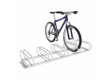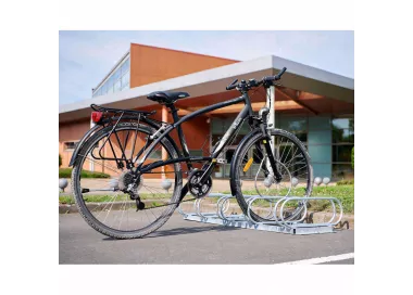 Réalisation : en acier galvanisé à chaud Arceaux : cintrés Ø 14 mm Capacité : 6 places Installation : à fixer au sol par vis d’ancrage Poids : 27 kg