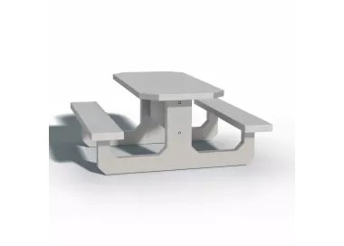Table de pique nique en béton armé, à sceller au sol, angles vifs chanfreinés Traitement anti-taches Enjambement libre capacité d'accueil 6 personnes + 2 personnes à mobilité réduite en bout...