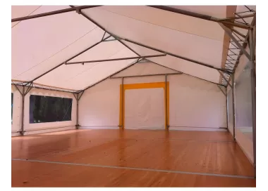 Dimensions et CouleurLargeur: 5 mHauteur: 2,20 mCouleur: BlancCaractéristiques Techniques Poids: 219 kg Surface: 25 m² Hauteur centrale: 5,30 m Classement au feu: M2ArmatureOssature en profilé...